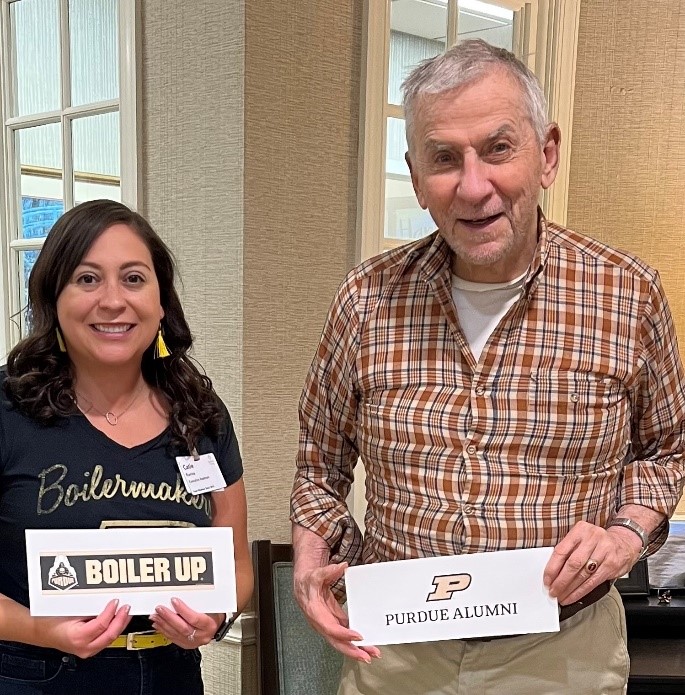 One or two times each month, Catie leads activities during her volunteering visits. As a member of the administration team at GHBC, she appreciates the opportunity to connect with residents with whom she does not often engage as part of our regular job. A special connection was made with a resident who was also born and raised in Indiana and is a fellow Purdue University Alumni.